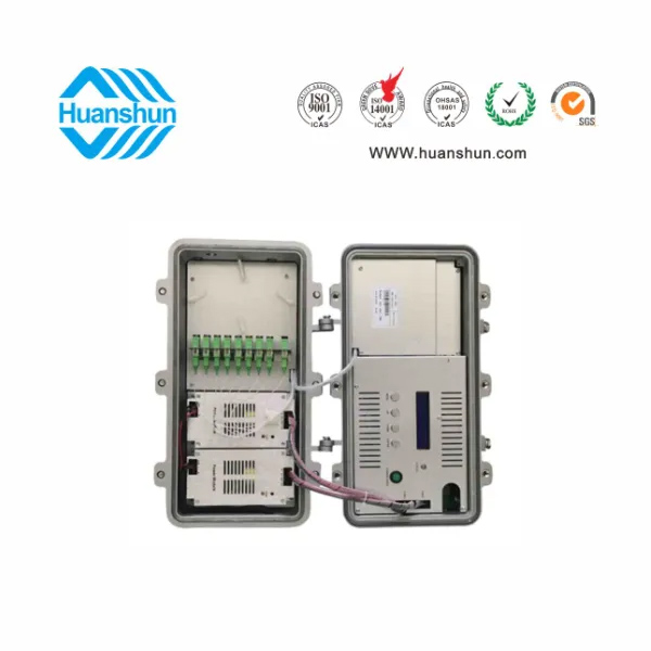野外型 EYDFA | HSGF100Y-0818-SA | 野外型防水結(jié)構(gòu),-5 ~ +10 d Bm輸入,8路標(biāo)稱(chēng)規(guī)格(18、19、20、21、22dBm)放大輸出,并支持下調(diào)-2dB,安全連接模式,NF ≤ 5dB(0dBm時(shí));雙電源AC90 ~ 255V供電或AC35 ~ 75V饋電,RJ45標(biāo)準(zhǔn)網(wǎng)管(支持SNMP、WEB) |