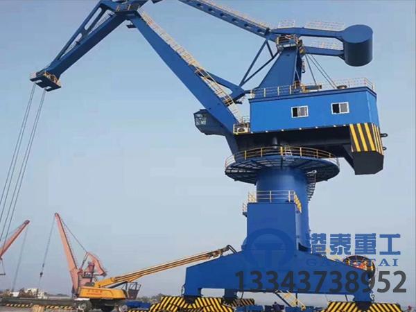 設計核心是 “多功能性”—— 既能通過旋轉快速切換作業方向,又能通過變幅調整作業半徑,適應港口、碼頭等 “多品類貨物(集裝箱、散貨、件雜貨)” 或造船中 “非固定工位” 的吊裝需求,額定起重量通常為 10-500 噸,兼顧 “靈活性” 與 “載荷能力”。